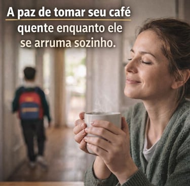 "Sempre achei que ele era 'preguiçoso', mas entendi que ele só estava perdido no meio de tantas ordens. Com os comandos visuais, ele transformou a manhã em um jogo. Ontem ele me deu 'oi' já calçado e com a lancheira na mão. A carinha de orgulho dele por conseguir fazer sozinho é a melhor parte. O Script SOS também me salvou nos dias em que ele acordou mais 'travado'. Recomendo para toda mãe de TDAH!"